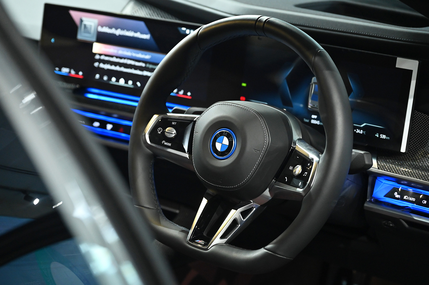 ห้องโดยสารตกแต่งด้วยหนังแท้ fine-grain Merino Leather มอบฟังก์ชัน Executive Lounge ด้วยระบบทัชสกรีน ‘BMW Theatre Screen’ ขนาด 31.3 นิ้ว ความคมชัดระดับ 8K รวมถึง Panorama Glass Roof with Sky Lounge และระบบสั่งงานอัจฉริยะ BMW Natural Interaction