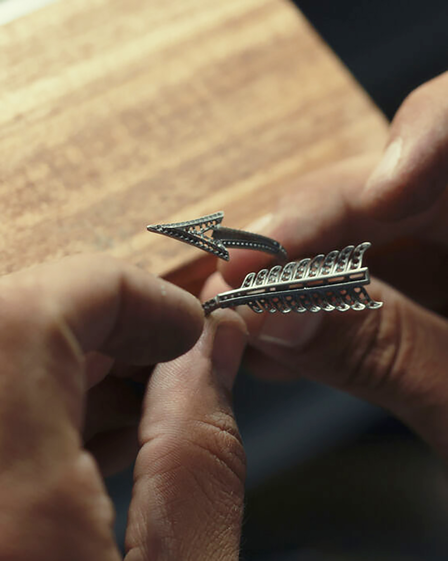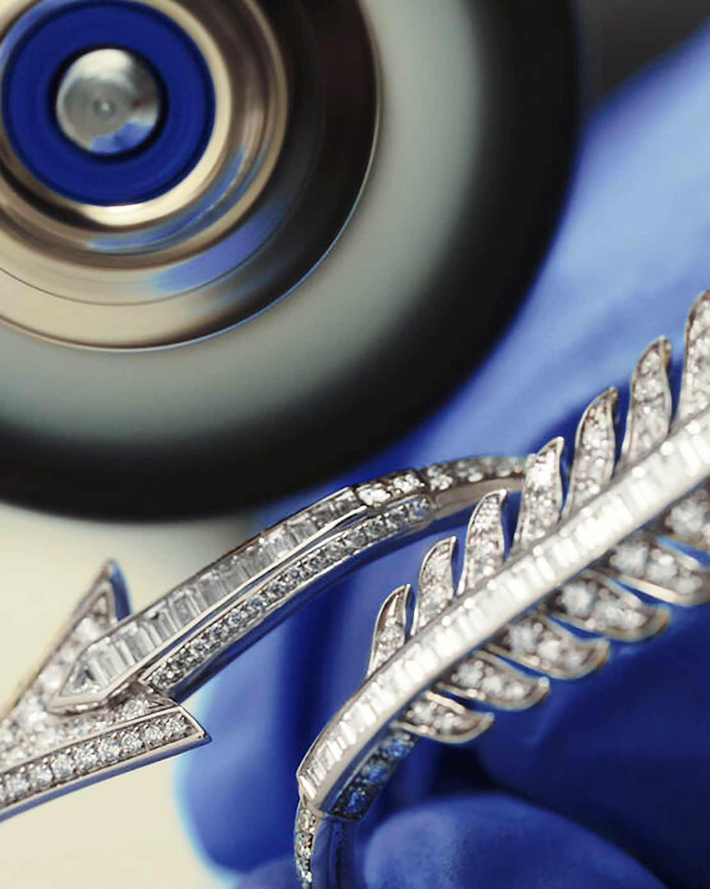 สะท้อนความเชี่ยวชาญของช่างฝีมือเมซงที่เปี่ยมไปด้วยทักษะและความประณีตในทุกกระบวนการ ตั้งแต่ภาพร่างไปจนถึงผลงานชิ้นสมบูรณ์ ความแม่นยำของเส้นสายและรายละเอียดที่เฉียบคม การฝังเพชรอย่างพิถีพิถัน คือสิ่งที่ทำให้ลูกศรของเมซง สะท้อนประกายเหนือกาลเวลา และคงสานต่อสัญลักษณ์อันเป็นนิรันดร์นี้ ด้วยการหลอมรวมจินตนาการอันไร้ขีดจำกัดเข้ากับศิลปะแห่งการรังสรรค์จิวเวลรีชั้นสูงราวกับงานประติมากรรม