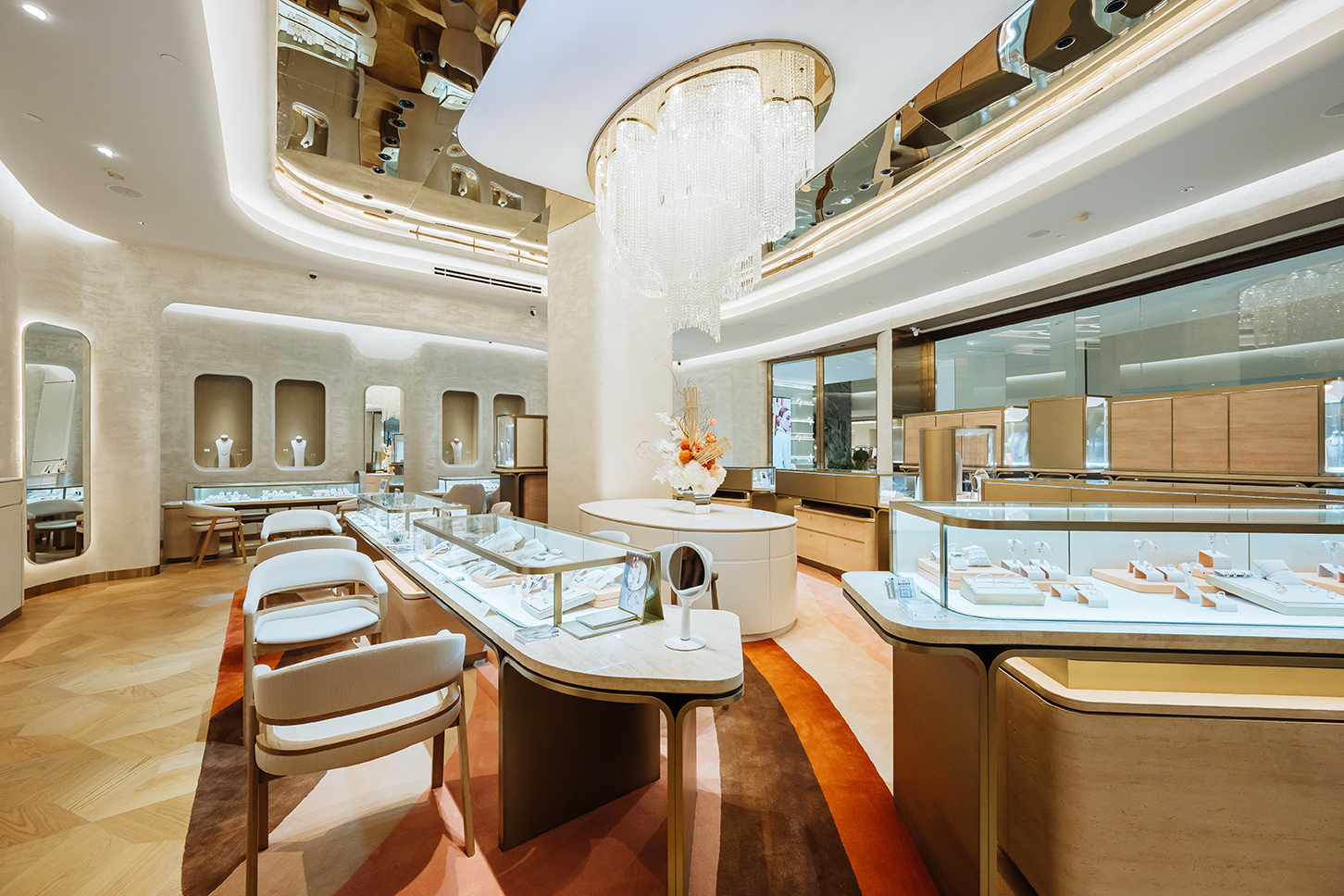 เดอมอนด์ บูติก แฟลกชิปสโตร์ ใจกลางเมือง ณ สยามพารากอน  เป็นหมุดหมายชวนฝัน ในการเดินทางมาค้นหา “ความหรูหรา” และ “อบอุ่น” ที่แตกต่าง ภายใต้แนวคิดการออกแบบ Reimagine Timeless Luxury มากกว่าความงามของสุนทรียศาสตร์ แต่เป็นพื้นที่สร้างประสบการณ์แห่งความประทับใจ เชื่อมต่อความพิเศษร่วมไว้ด้วยกัน เสมือนได้ท่องงานศิลป์อันละเมียดผ่านการเจียระไน สื่องานฝีมืออันเป็น Craftsmanship ที่สะท้อนถึงพลังและความเชื่อบนเส้นทางของแบรนด์  ที่มีลายเส้นแห่ง ดวงดาว เป็นแสงทองส่องนำทาง สะท้อนสัญลักษณ์ของความหวัง ความฝันและแรงบันดาลใจต่างๆ ที่สอดแทรกไว้ ณ บูติกแห่งนี้  สัมผัสชื่นชมความงดงามของไฟน์จิวเวลรี่ได้ทุกมุมมองอย่างชัดเจน ผ่าน 3 โซนหลัก เริ่มด้วย