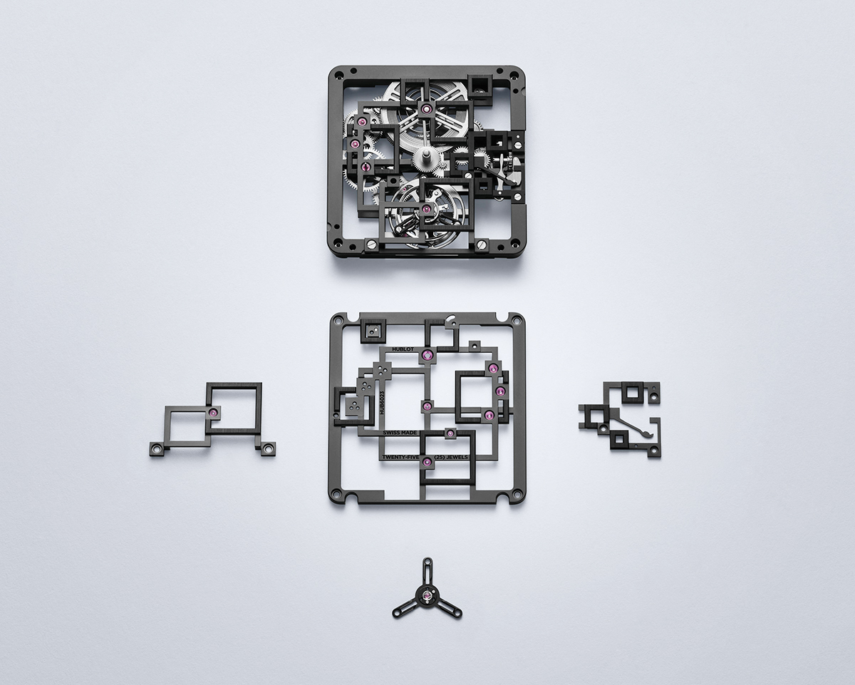 Julien Tornare (จูเลี่ยน ทอร์นาเร่) CEO ของ Hublot กล่าวว่า “ที่ผ่านมาความก้าวหน้าในการพัฒนานาฬิการูปทรงสี่เหลี่ยมยังค่อนข้างจำกัด โดยมักถูกจำกัดอยู่เพียงแค่ที่ตัวเรือนเท่านั้น เราต้องการผลักดันแนวคิดนี้ให้ไปถึงที่สุด โดยการออกแบบกลไกภายในที่มีโครงสร้างทางสถาปัตยกรรมเป็นรูปมุมฉากทั้งหมด สะพานจักรกลเป็นรูปทรงตรง เรียบคมราวกับกลไกที่เต้นไปตามจังหวะของรูปทรงกลมอย่างสมบูรณ์แบบ ไม่ว่าจะเป็นกลไกตูร์บิญง บาร์เรล หรือกำลังลานสำรอง เป็นการผสมผสานที่สมบูรณ์แบบ”