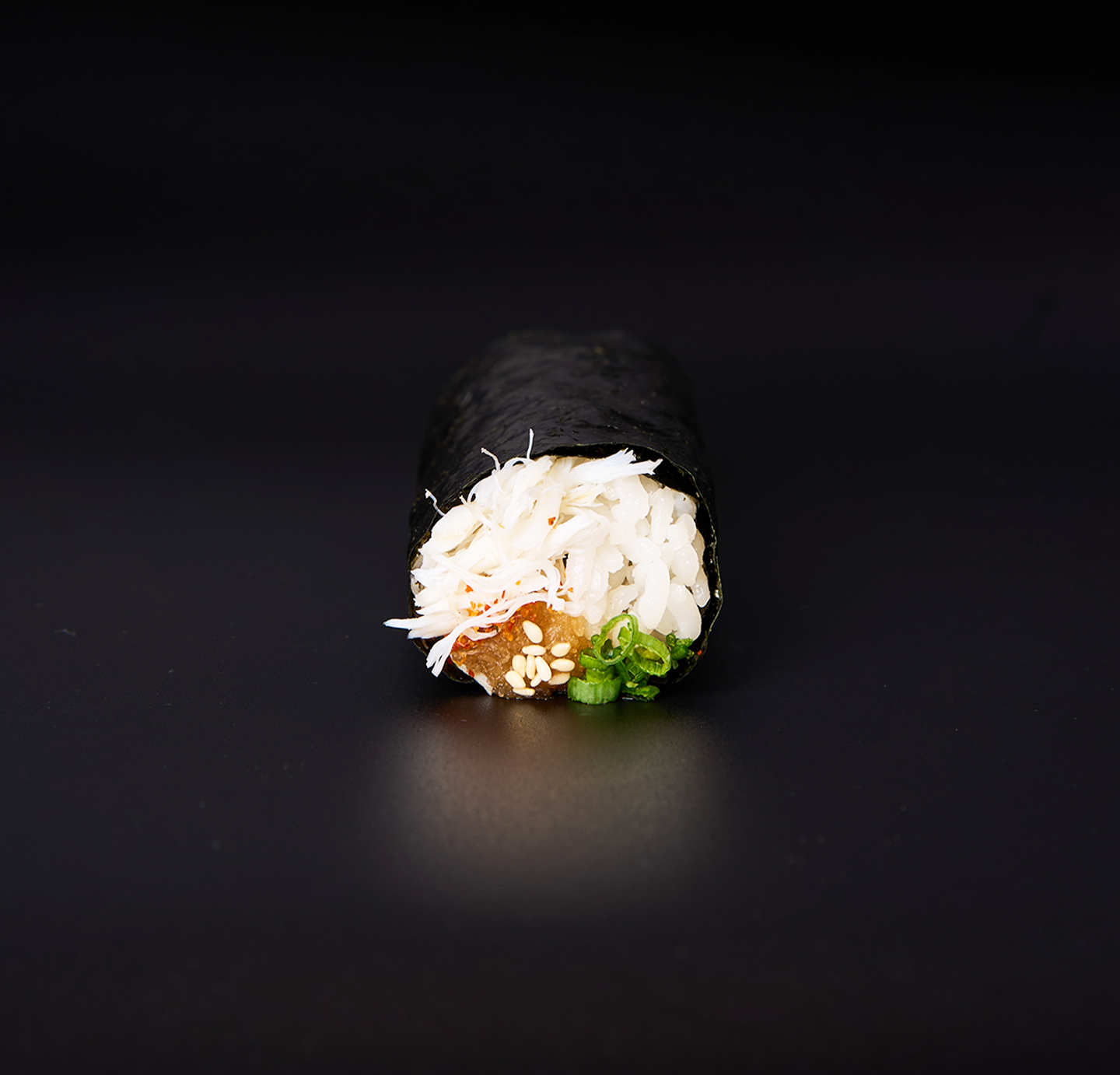 2. Spicy Crab เนื้อปูหวาน เนื้อแน่นๆ ที่เพิ่มรสชาติความสดชื่นและความกลมกล่อมด้วยซอสพอนสึที่ผสมรสชาติความเผ็ดนิดๆ ทำให้คำนี้กลายเป็นความอร่อยที่ลงตัว