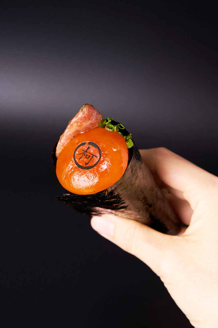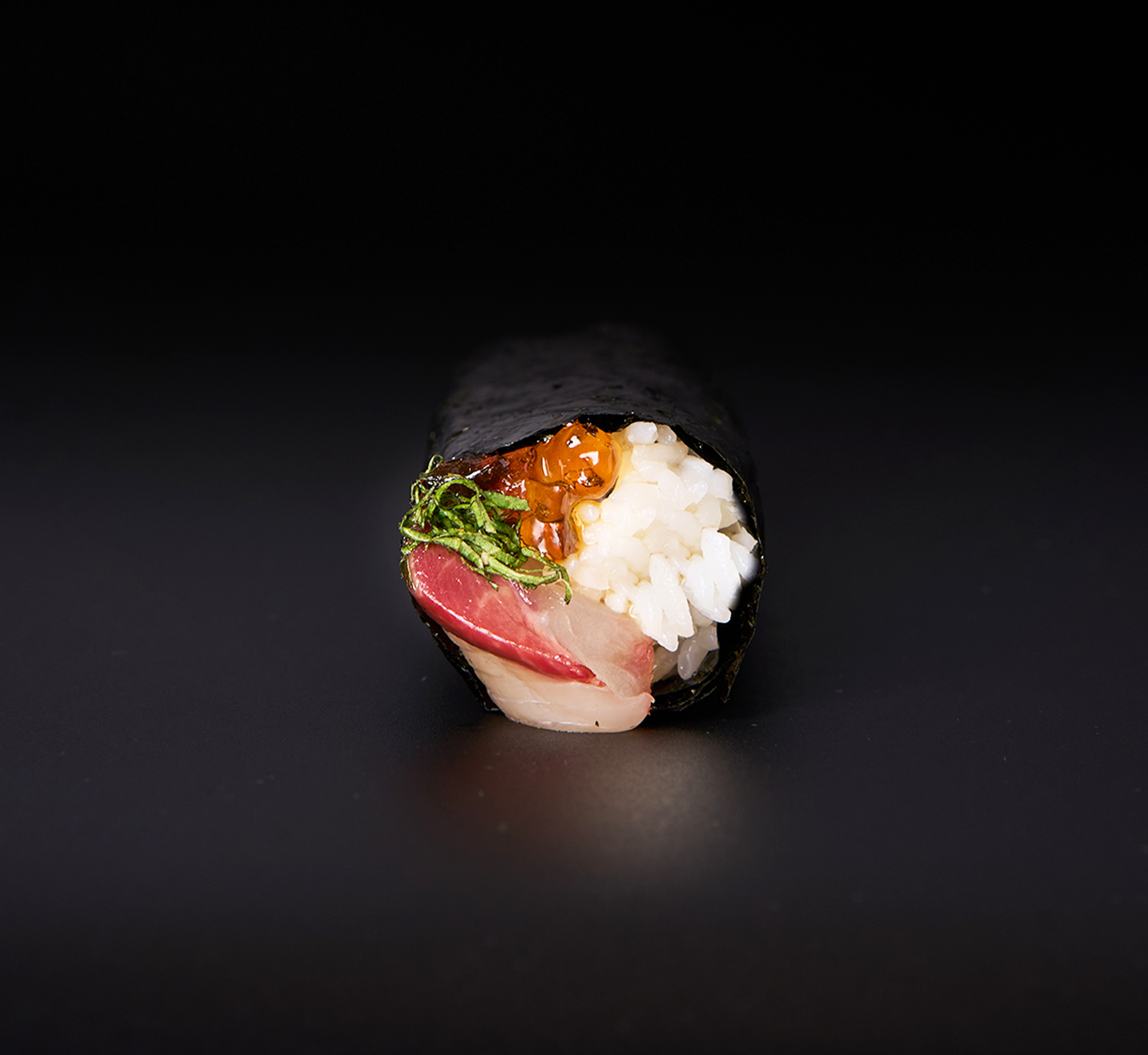 3. Otoro Bomb เรียกว่าคำนี้คือจุดเด่นของเซ็ตนี้เลยก็ว่าได้ เนื้อปลาทูน่าส่วนท้องที่มีมันแทรก ซึ่งเทียบเท่ากับเนื้อ A5 นำมาชุบกับซอสสุกี้กับไข่แดง วางบนข้าวซูชิสูตรเฉพาะของทางร้าน ม้วนด้วยสาหร่ายกรอบพิเศษ ทำให้เวลากัดเข้าไปคำแรกจะได้รสชาติของโรลอย่างกลมกล่อมแบบพอดี
