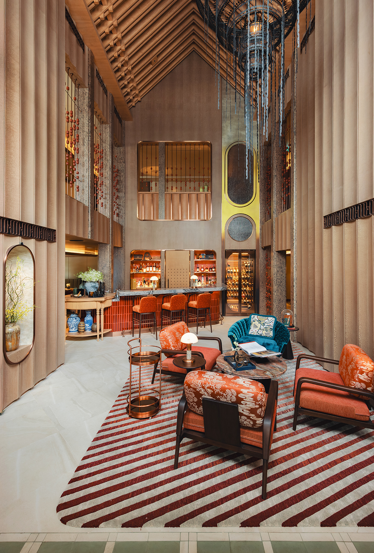 โดยร้านตั้งอยู่ในอาคารบริเวณทางเข้าหลักโรงแรม ร้านอาหารจีน เดอะ ไชน่าเฮ้าส์ หนึ่งในร้านอาหารระดับตำนานของกรุงเทพฯ ที่ครองใจผู้คนมาอย่างยาวนาน ซึ่งการปรับโฉมครั้งนี้ บริษัท Steve Leung Design Group ถ่ายทอดแรงบันดาลใจจากเสน่ห์แห่งเมืองเฉาซ่าน เมืองที่ขึ้นชื่อทั้งด้านอาหารรสเลิศ ผ่านสัมพันธ์อันแน่นแฟ้นของการทานอาหารในครอบครัว และงานหัตถศิลป์ที่ผ่านการสืบทอดกันมาหลายชั่วอายุคน แนวคิดดังกล่าวถูกตีความใหม่อย่างร่วมสมัย ตั้งแต่รายละเอียดพื้นผิวที่สะท้อนภาพหมู่บ้านชาวประมง ไปจนถึงโคมไฟเพนเดนต์ที่ออกแบบโดย Pin Art Studio ได้แรงบันดาลใจจาก เฟิงกว่าน หรือมงกุฎฟีนิกซ์แบบดั้งเดิม ทุกองค์ประกอบผสานอย่างประณีต ถ่ายทอดบทสนทนาอันงดงามระหว่างมรดกตกทอดทางวัฒนธรรมและศิลปะร่วมสมัย