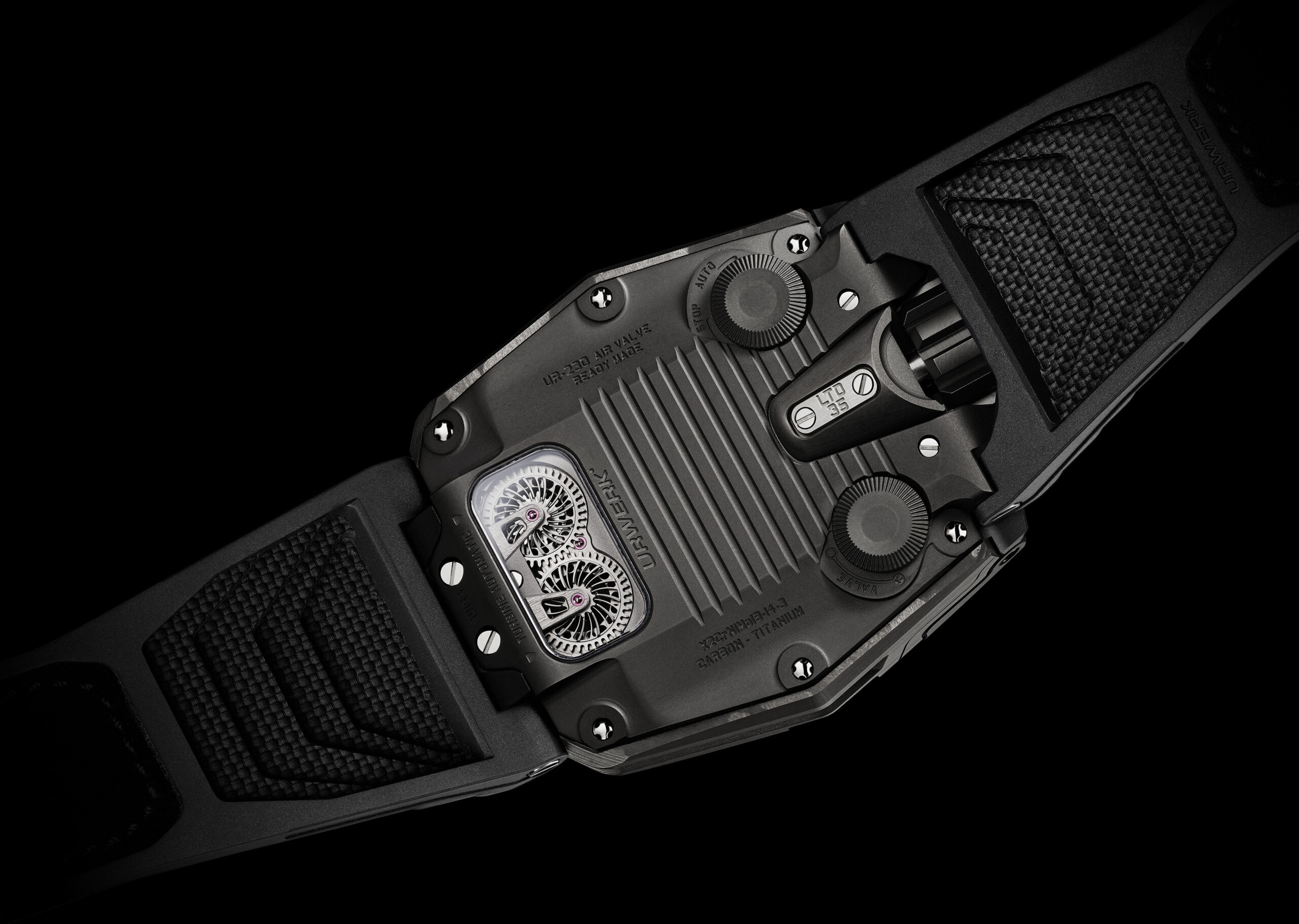 UR-230 “Black Star” โดดเด่นหลากหลายมิติ เริ่มจากโครงสร้างของกลไก Calibre UR-7.30 ทำหน้าที่ขับเคลื่อนนาฬิกาบรรจุภายในโครงไทเทเนียมแบบปิดผนึกแน่นหนา ซึ่งออกแบบให้ทำหน้าที่เสมือนตู้นิรภัยเชิงกล รายล้อมด้วยตัวเรือนคอมโพสิตเซรามิกและฝาหลังไทเทเนียมเคลือบ DLC สีดำ ซึ่งประกอบกันเป็นเกาะนอกของ UR-230