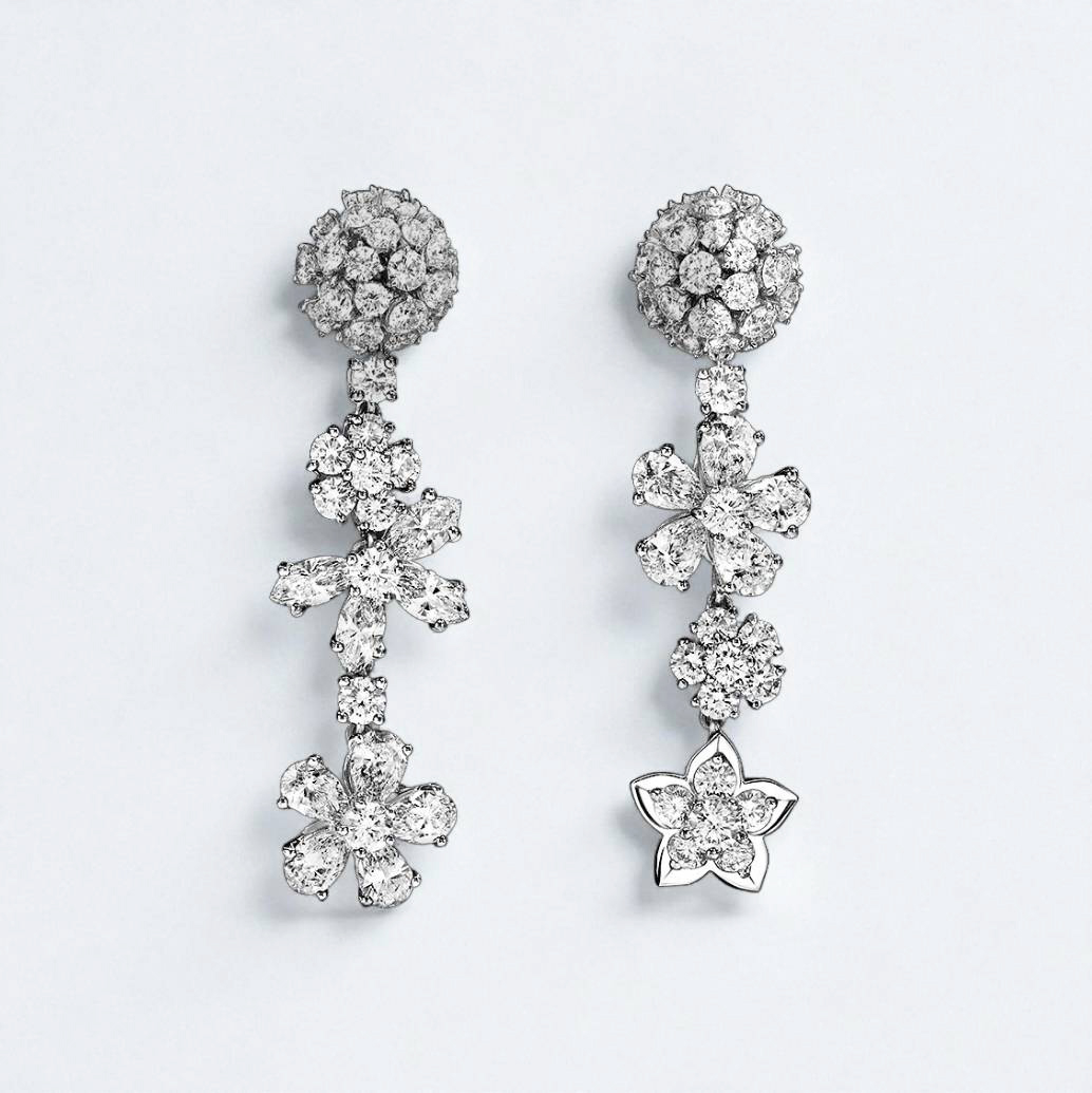 สำหรับคอลเลกชันคลาสสิกของเครื่องประดับชั้นสูง “ดอกไม้ป่า” ร้อยเรียงเพชรลูกทรงกลมนำมาฝังเรียงแถวเชื่อมต่อโมทิฟแต่ละชิ้นบนโครงสร้างตัวเรือน เจียระไนทรงเหลี่ยมข้าวสาร และทรงหยดน้ำ ถ่ายทอดความอ่อนช้อยของวงกลีบได้อย่างละเมียดละไม นอกจากเพชรทั้งหมดเหล่านี้ ล้วนผ่านการคัดสรรโดยทีมผู้เชี่ยวชาญประจำแผนกรัตนชาติของเมซง อิงตามมาตรฐานคุณภาพระดับสูง พิถีพิถัน ใส่ใจเป็นอย่างยิ่งต่อความงามสง่าของหน้าตัดและเหลี่ยมมุมเจียระไน อันมีบทบาทสำคัญยิ่งในการสร้างความกลมกลืน ทวีประกายระยับแสงสุกสว่างทั้งชิ้นงาน