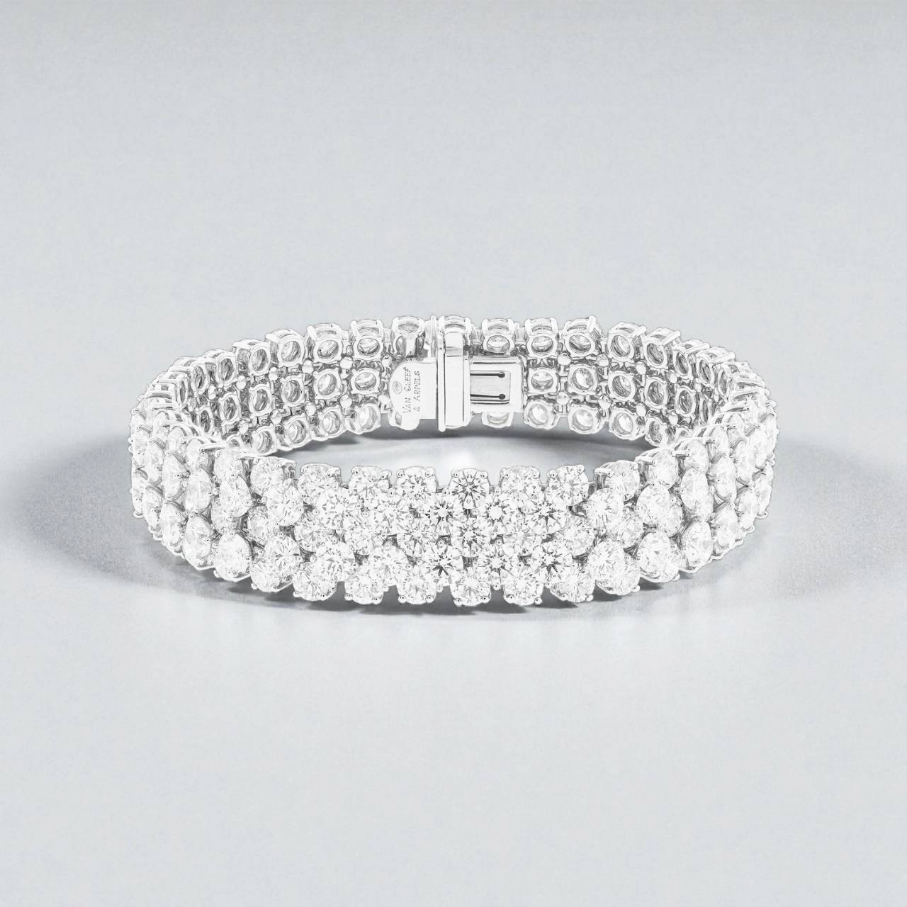 เสมือนเป็นเวทีแสดงความเลอค่าของน้ำเพชรท่ามกลางความวิจิตรบรรจง ชวนให้นึกถึงเครื่องประดับเพชรน้ำ ซึ่งครองความนิยตลอดทศวรรษ 1930 ผลงานบางชิ้นในคอลเลกชัน À Cheval คงทวีความเลอค่าด้วยลูกเล่นเชิงศิลป์ จากการดัดแปลง พลิกแพลงวิธีสวมใส่ จากสร้อยคอหนึ่งเส้นสู่การแยกชิ้นเป็นสร้อยข้อมือสองเส้น เช่นเดียวกับจี้ต่างหูที่ง่ายต่อการปลดออกมาใช้เป็นเข็มกลัด