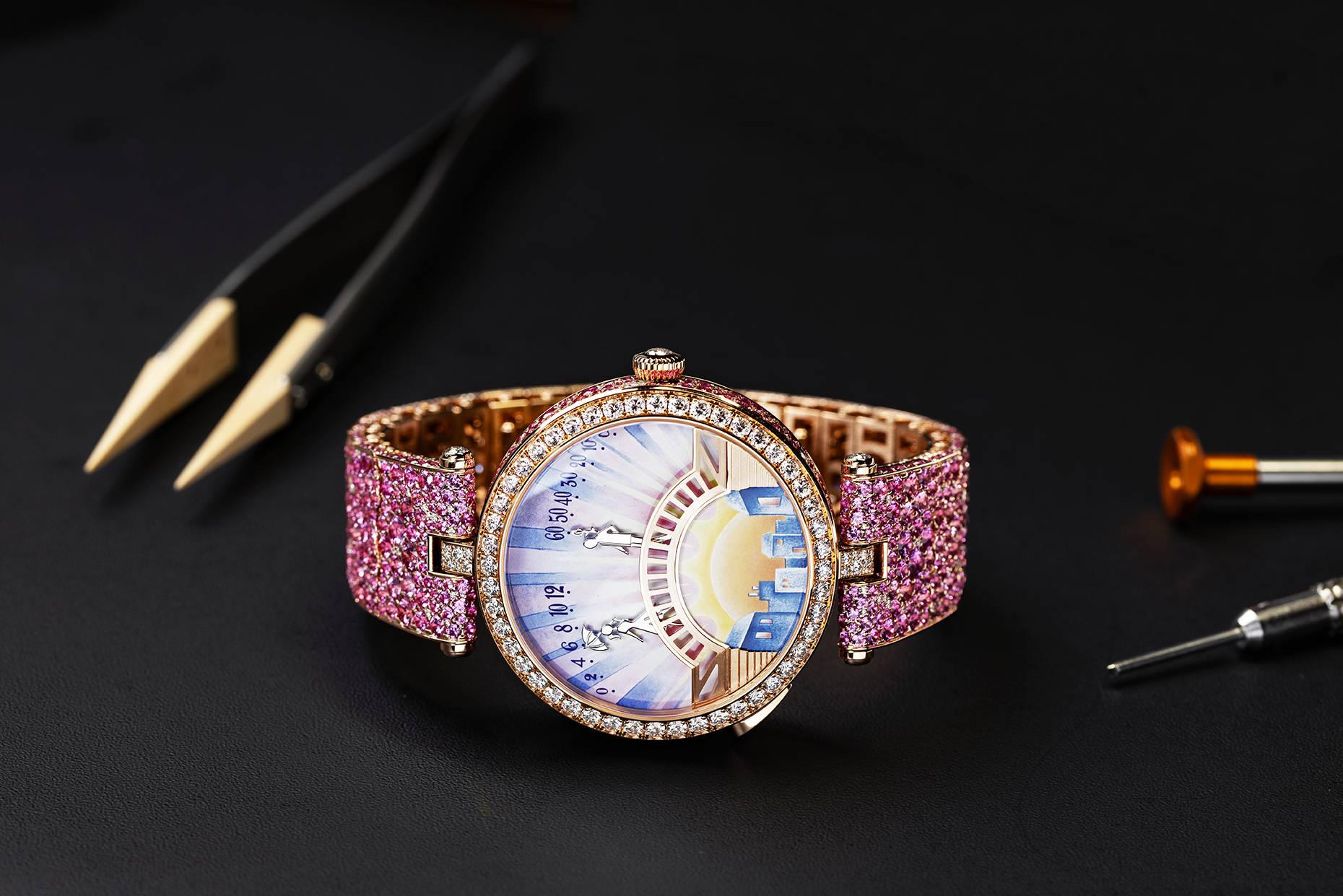 เรือนชมพู Lady Arpels Pont des Amoureux Soirée watch นาฬิกาข้อมือเลดี อารเปลส์ “สะพานแห่งความรัก” แสงอัสดง